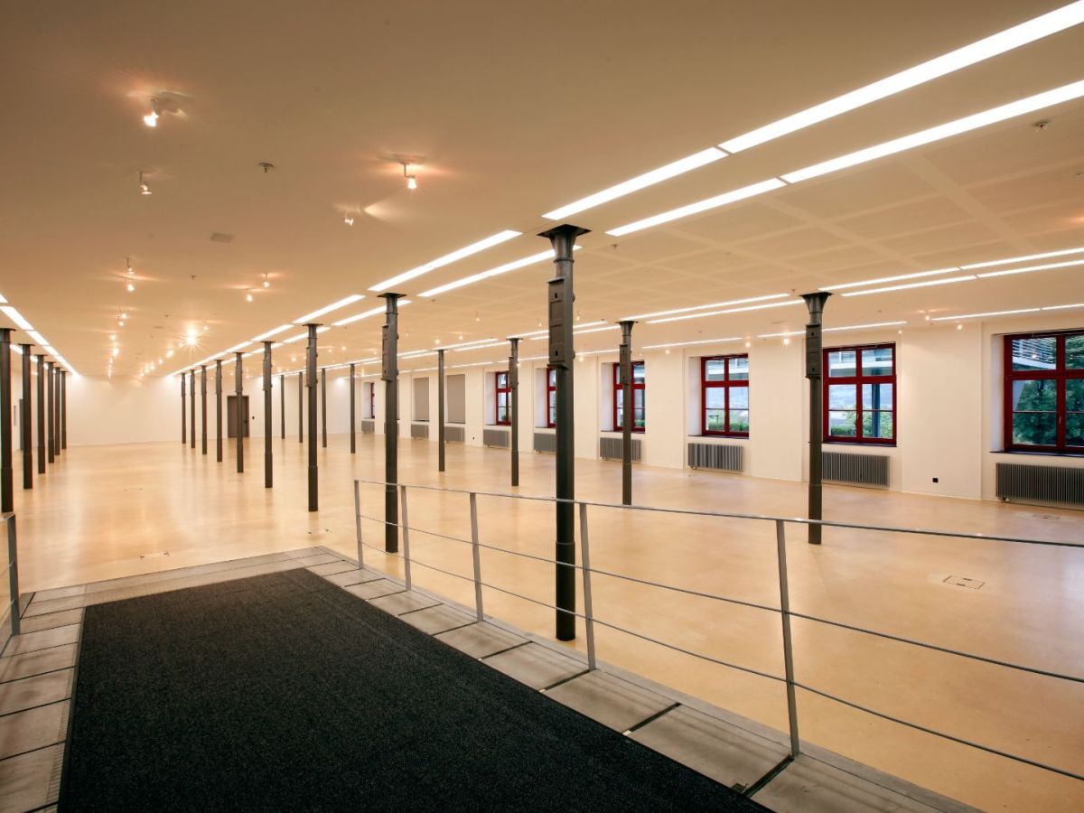 Ganze 582m2 Grundfläche können Sie für Ihre Ausstellung nutzen. Der Raum kann mittels mobilen Trennwänden auch in kleinere Einheiten geteilt werden. Für Schulungen und Seminare sowie Feierlichkeiten mit Steh-Apéros eignet sich der Ausstellungsraum ideal. Er kann auch mit dem Entree zusammen genutzt werden.