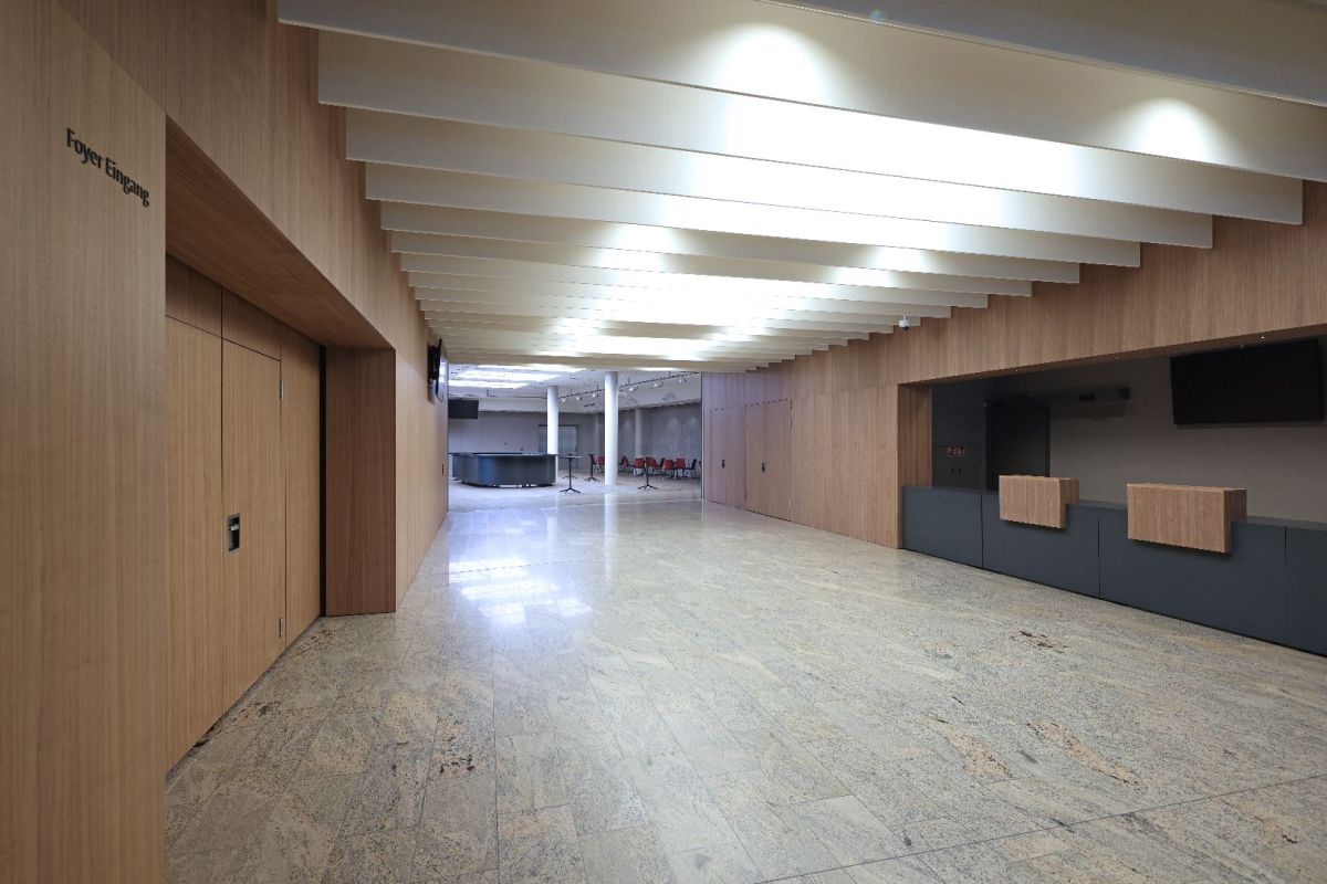 Gleich beim Haupteingang des Vaduzer-Saals befindet sich das Foyer. Dieses eignet sich u.a. für Konferenzen und Vorträge.