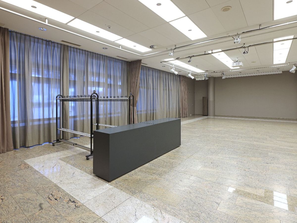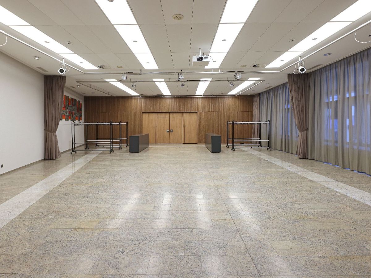 Es hat eine Grundfläche von 290m2. Das Fassungsvermögen bei Reihenbestuhlung Beträgt 230 Sitzplätze. Im Raum ist ein Beamer 4500 Lumen samt Leinwand fix installiert. Sie erhalten auf Wunsch Rednerpult samt Beschallung. Im Entrée könnten Sie gleich mit Stehtischen und Barelementen den dazu passenden Apéro gestalten.
