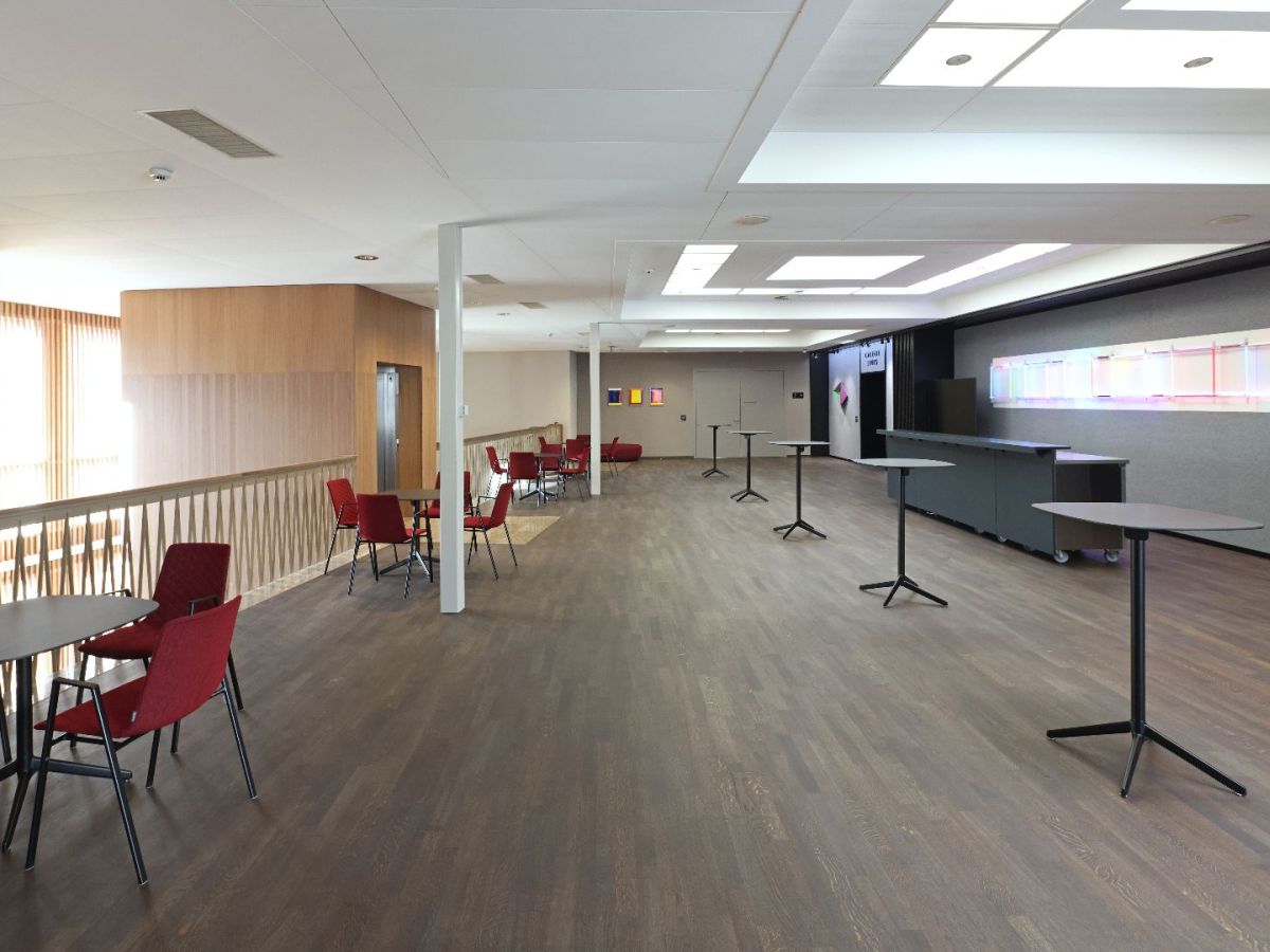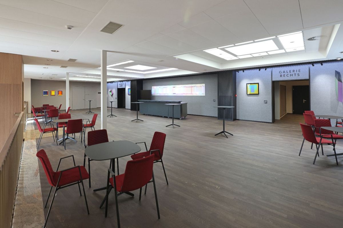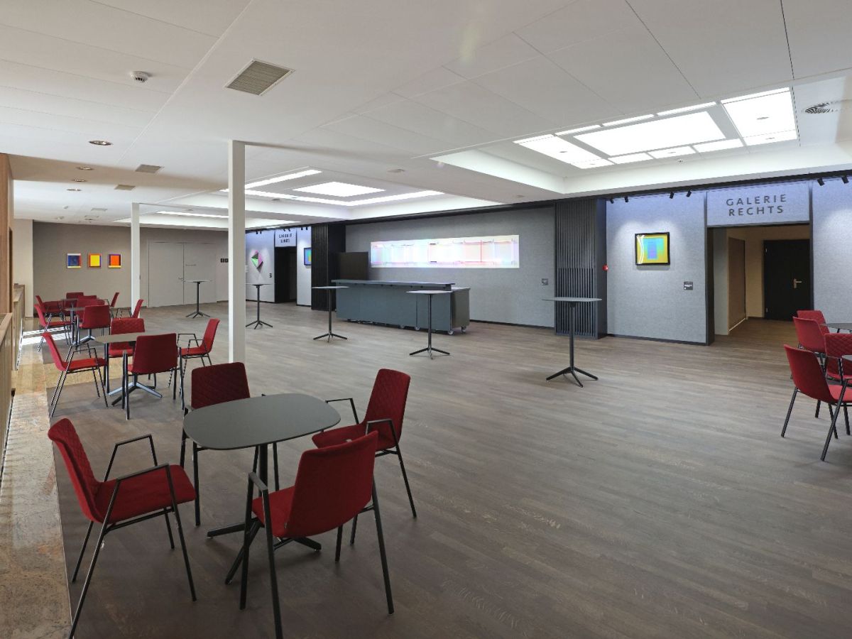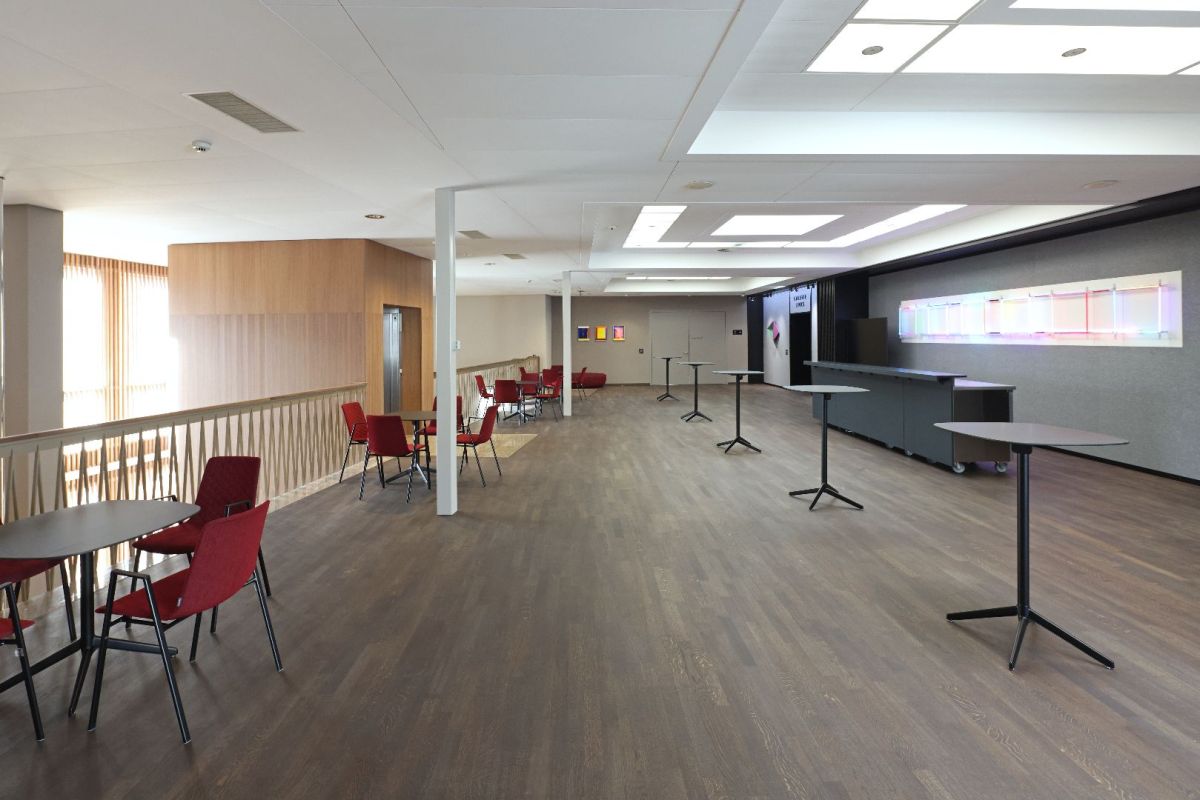 Der offene Raum mit Direktzugang zur Galerie des Zuschauerraums bietet sich an für Apéro oder VIP Lounge.