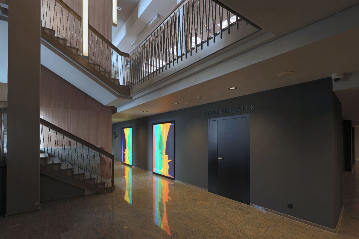 Die Trennwände können so geöffnet werden, dass rund ums Kellertheater eine Bar eingerichtet werden kann, für eine angeneheme Atmosphäre wie z.B. bei einem Jazz- oder Blueskonzert. Das Kellertheater verfügt mit dem Eingang Süd über einen eigenen bedachten Zugang.